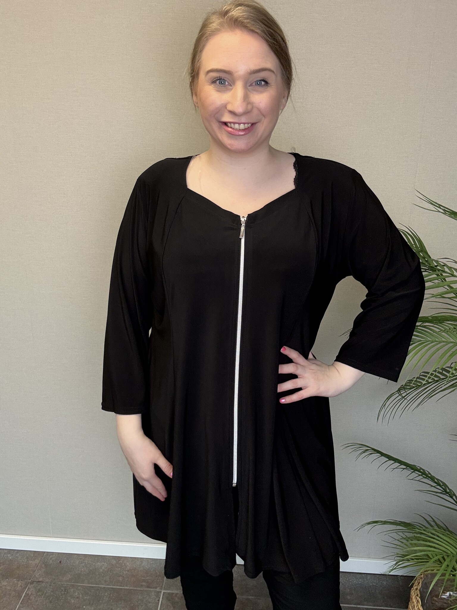 Dit C-2606 vest Annemiek van Magna Fashion is een elegant model met een mooie V-hals. Door de basic zwarte kleur kun je hier eindeloos mee combineren. De rits aan de voorkant kan helemaal open zodat je het vest zowel open als dicht kan dragen. Daarnaast zit Annemiek ontzettend comfortabel door de stretchstof: een perfect vest om in laagjes te dragen, zodat je dit vest het hele jaar door kan dragen!