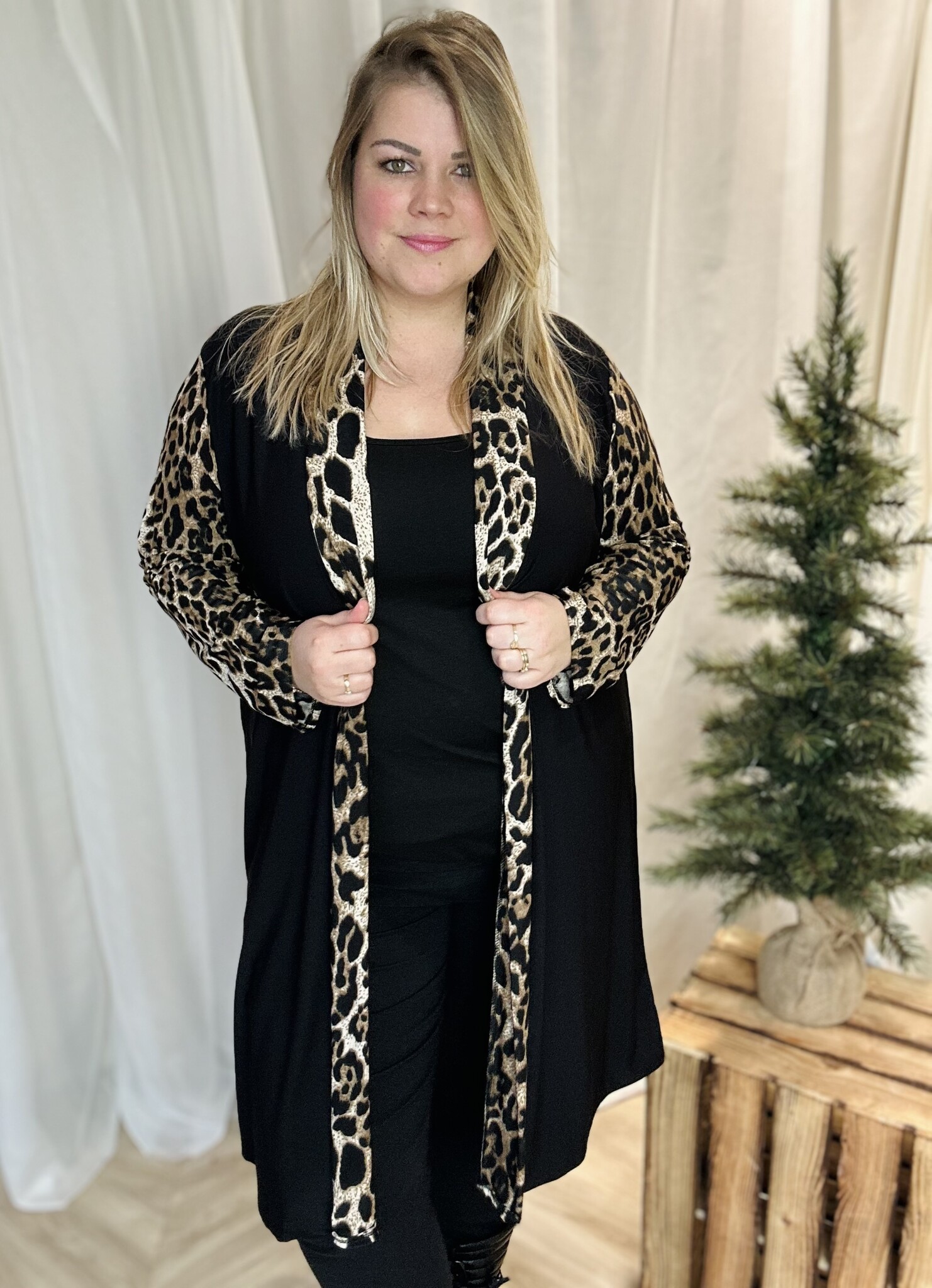 Deze superleuke vesten van travelstof combineren comfort met een trendy panterprint. Verkrijgbaar in zwart en donkerblauw, met een stijlvolle panterprint streep op de voorkant en mouwen, waardoor ze direct opvallen.