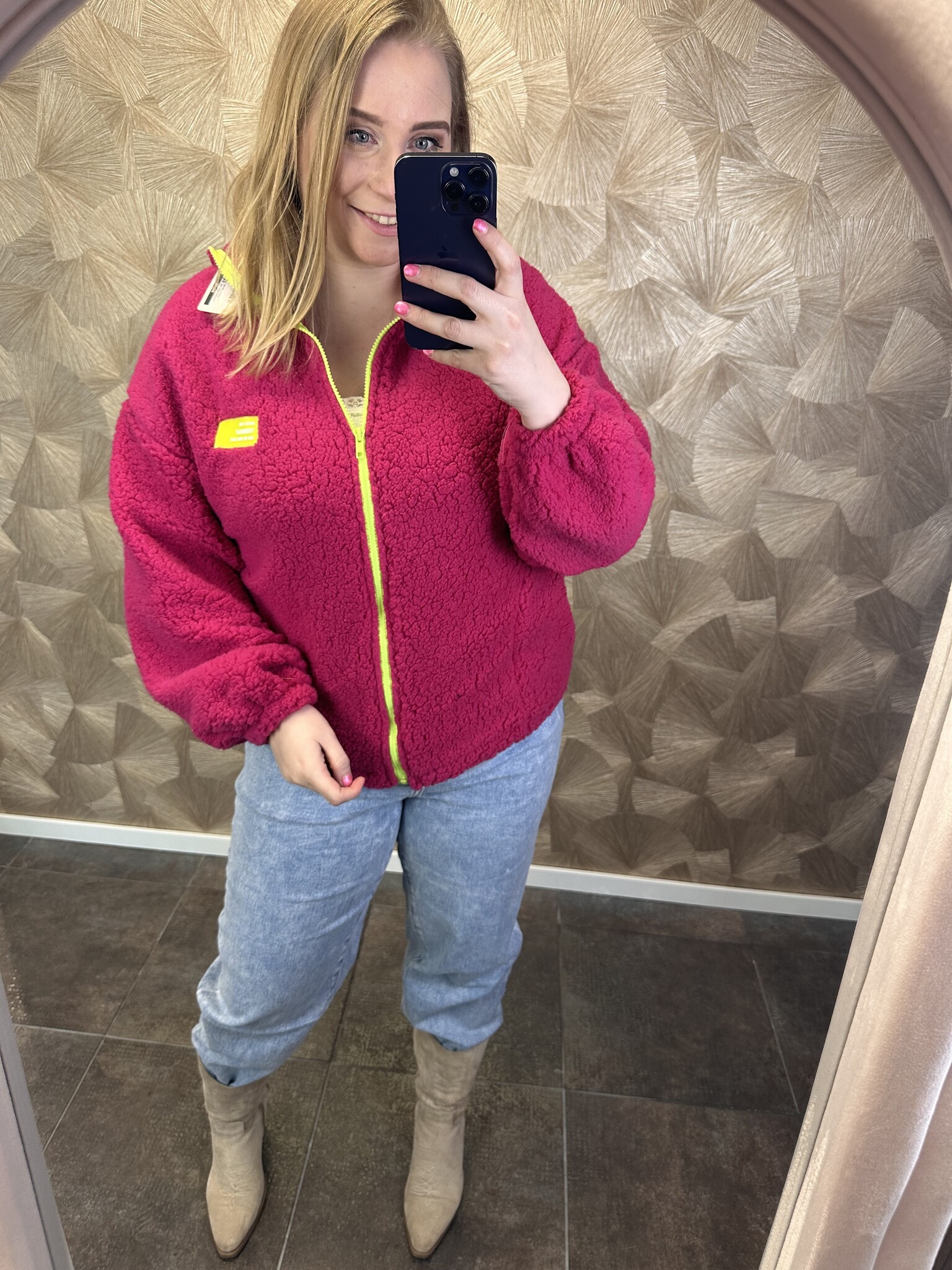 Beautyvol - Wat een heerlijk knuffelig vest is dit, Vest Teddy. Er zit een rits in van boven tot onder. Voorzien van een leuke embleem met tekst ''Dress for yourself and no one else''. Lekker warm en te dragen vanaf maat 42 tot en met maat 48.