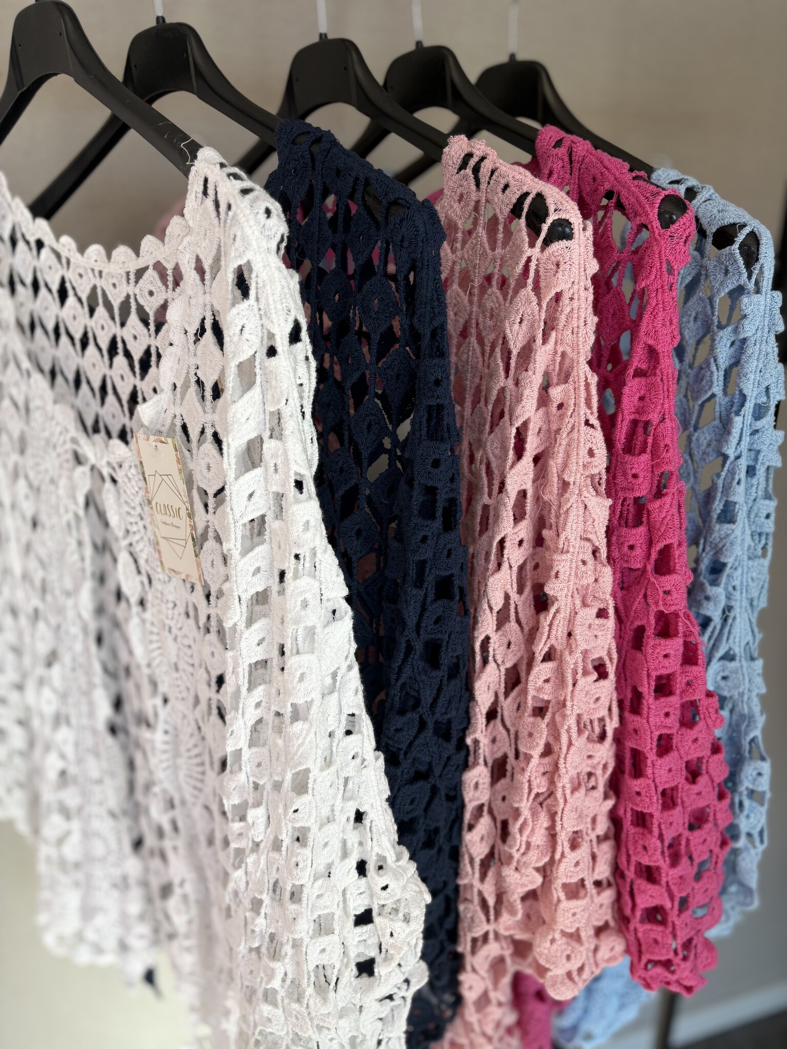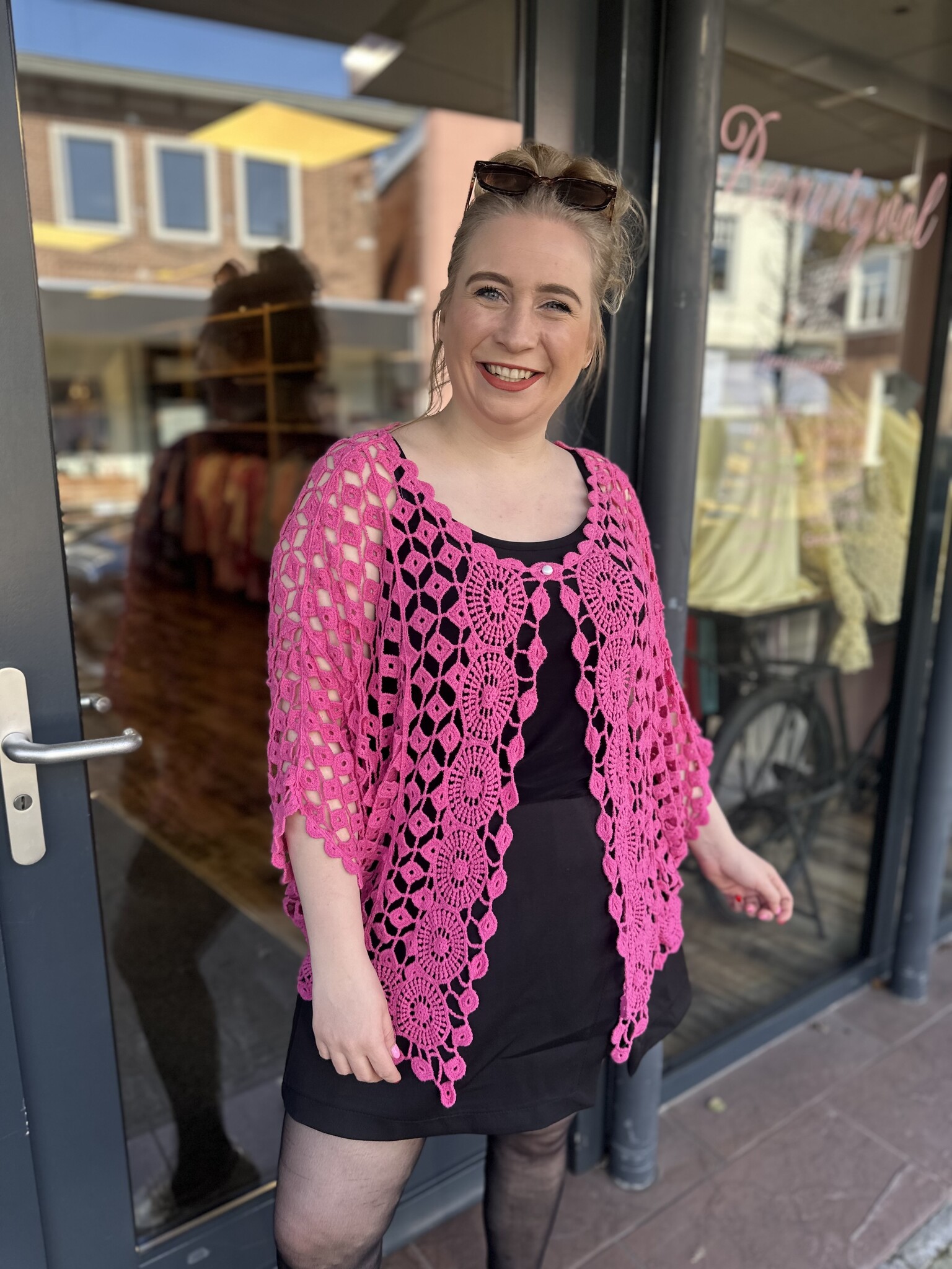 Dit gehaakte vest van Beautyvol hebben we in verschillende kleuren! Een prettig te dragen item voor in de lente en in de zomer. Dit vest is gehaakt met een opengewerkt patroon en is bovenaan vast te knopen met 1 knoop. Leuk te combineren met een mooie top of over een mooie jurk.