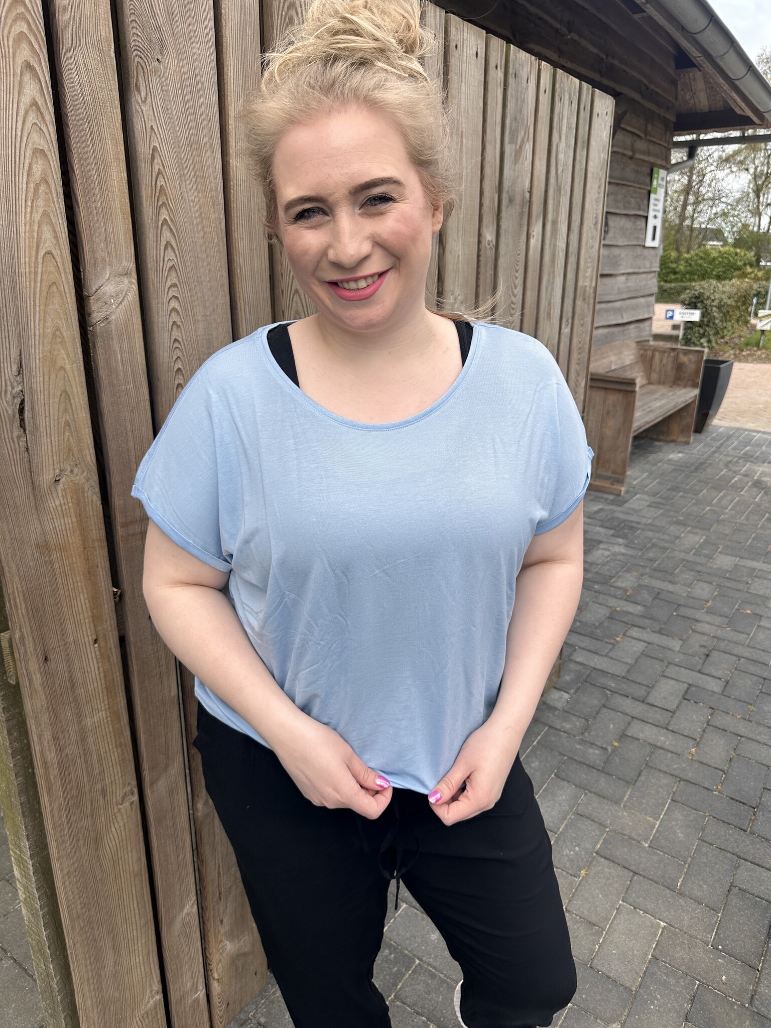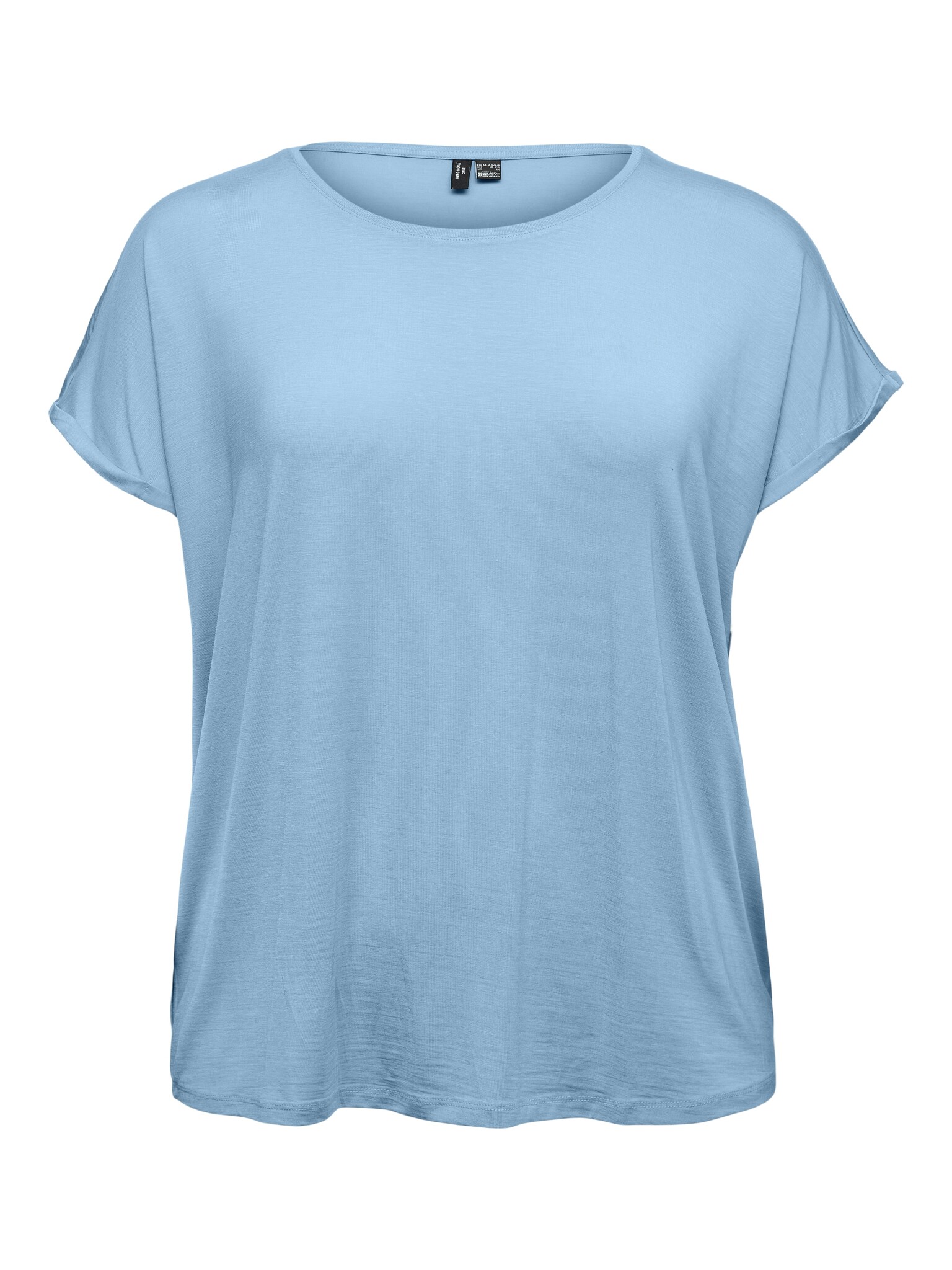 Dit lichtblauwe shirt van Vero Moda Curve heeft een frisse en casual uitstraling. De O-hals en korte mouwen geven dit model een tijdloze en verzorgde look. Draag dit shirt op een jeans of onder een vest voor een eenvoudige outfit die altijd werkt.