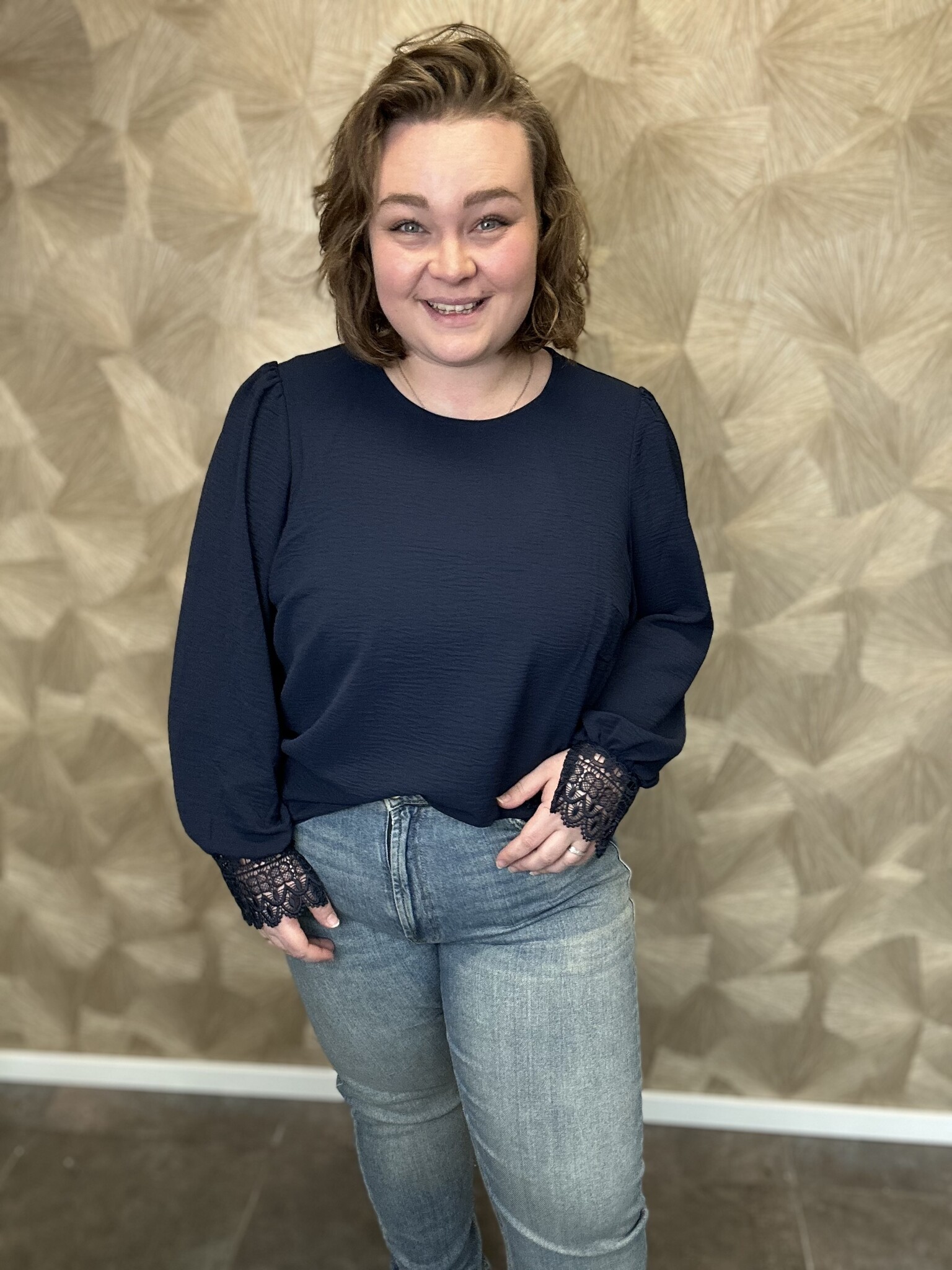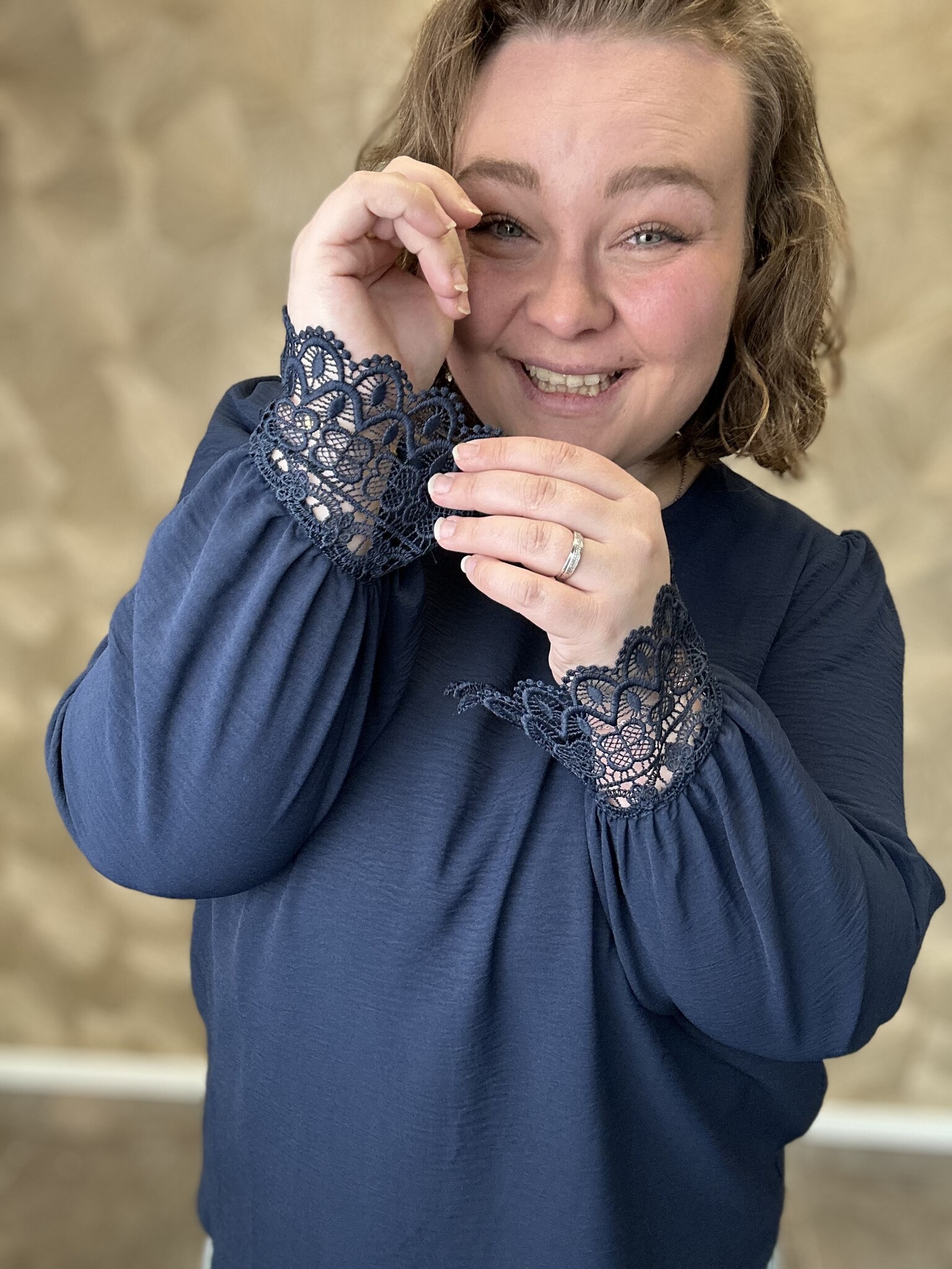 VMCALVA LACE LS O-NECK TOP WVN GA CUR Navy Blazer