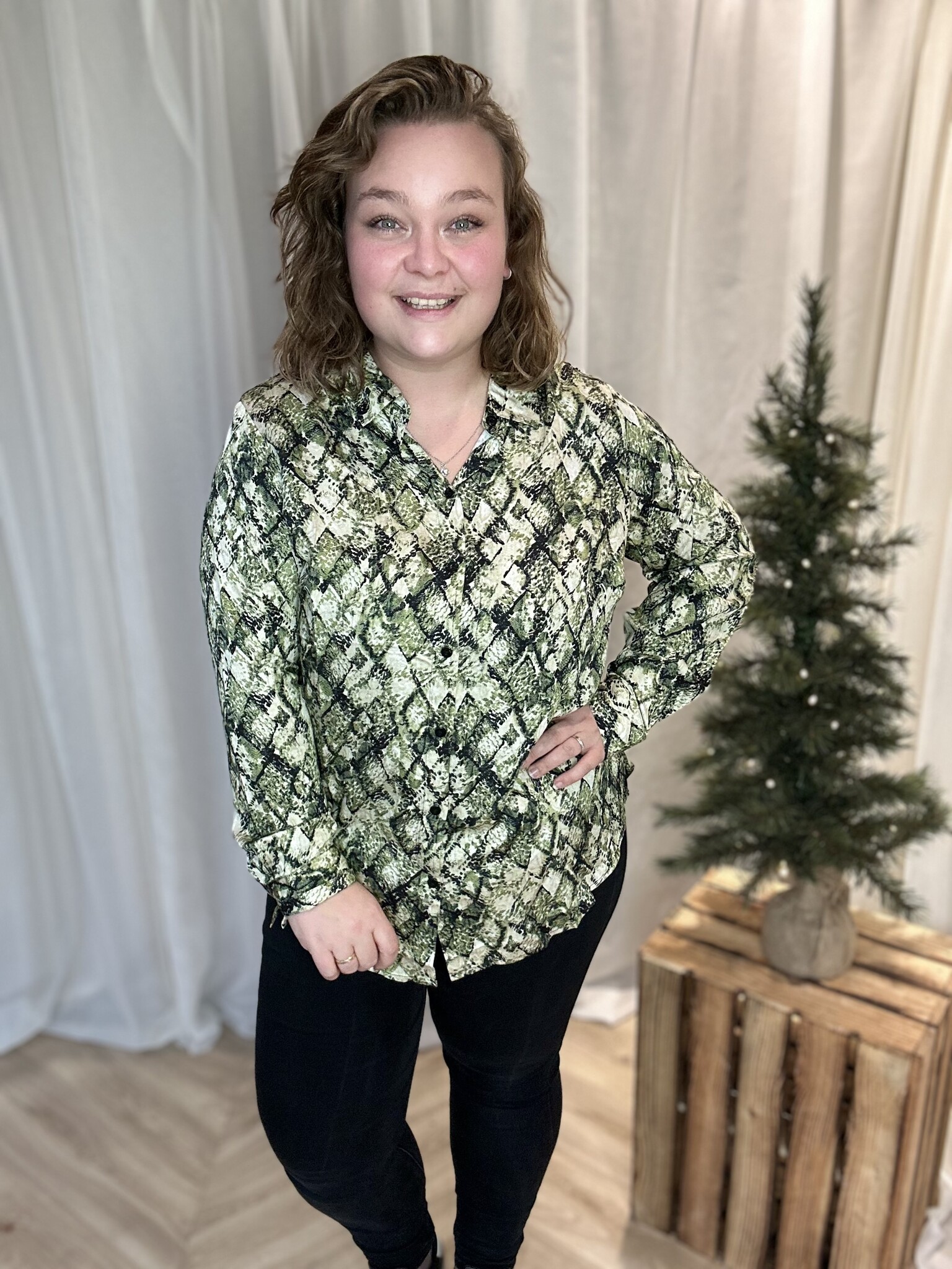 Vero Moda Curve - Deze geweldige blouse kan niet ontbreken in je kast! Houd jij ook van groen en leuke (dierlijke) patronen, dan is deze echt wat voor jou. Ik het groen met een leuk slangenprint.