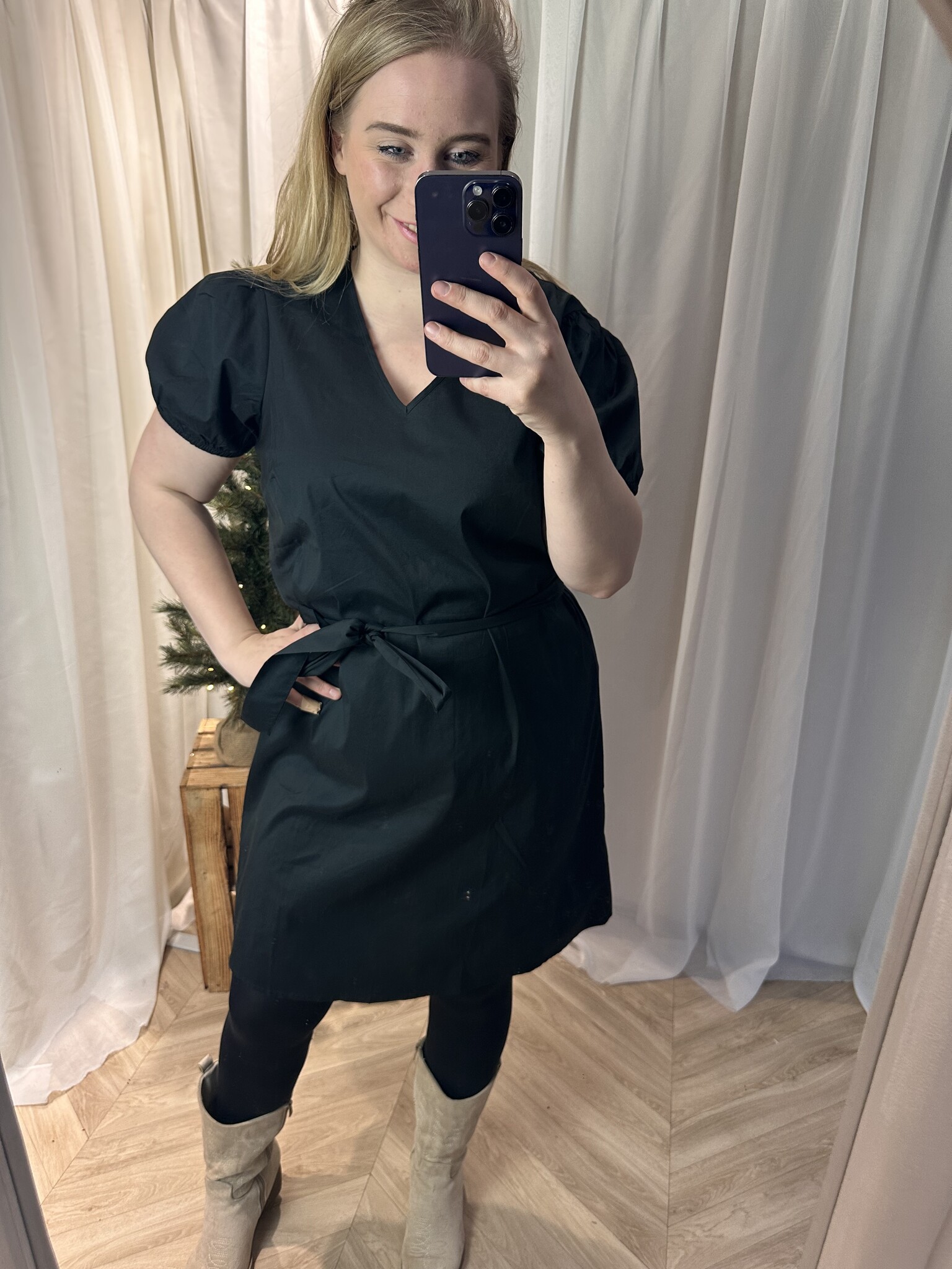Vero moda curve- Valt goed op maat super mooi model jurk die leuk tailleerd met ceintuur en leuke pofmouwen. van katoen en polyester.