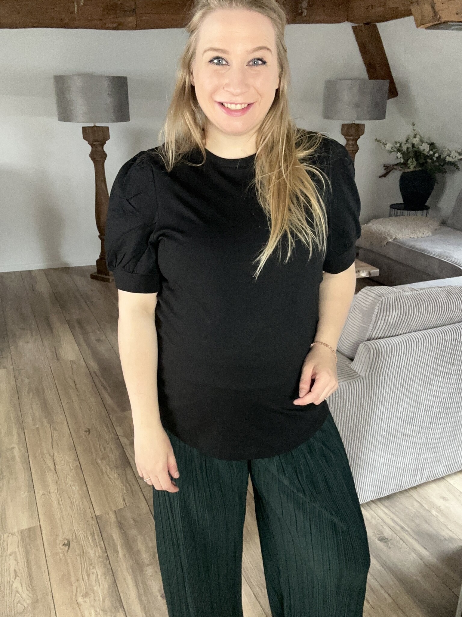 Vero Moda Curve - Super leuke zwarte basic. Het shirt heeft ronde hals en prachtige korte pofmouw.