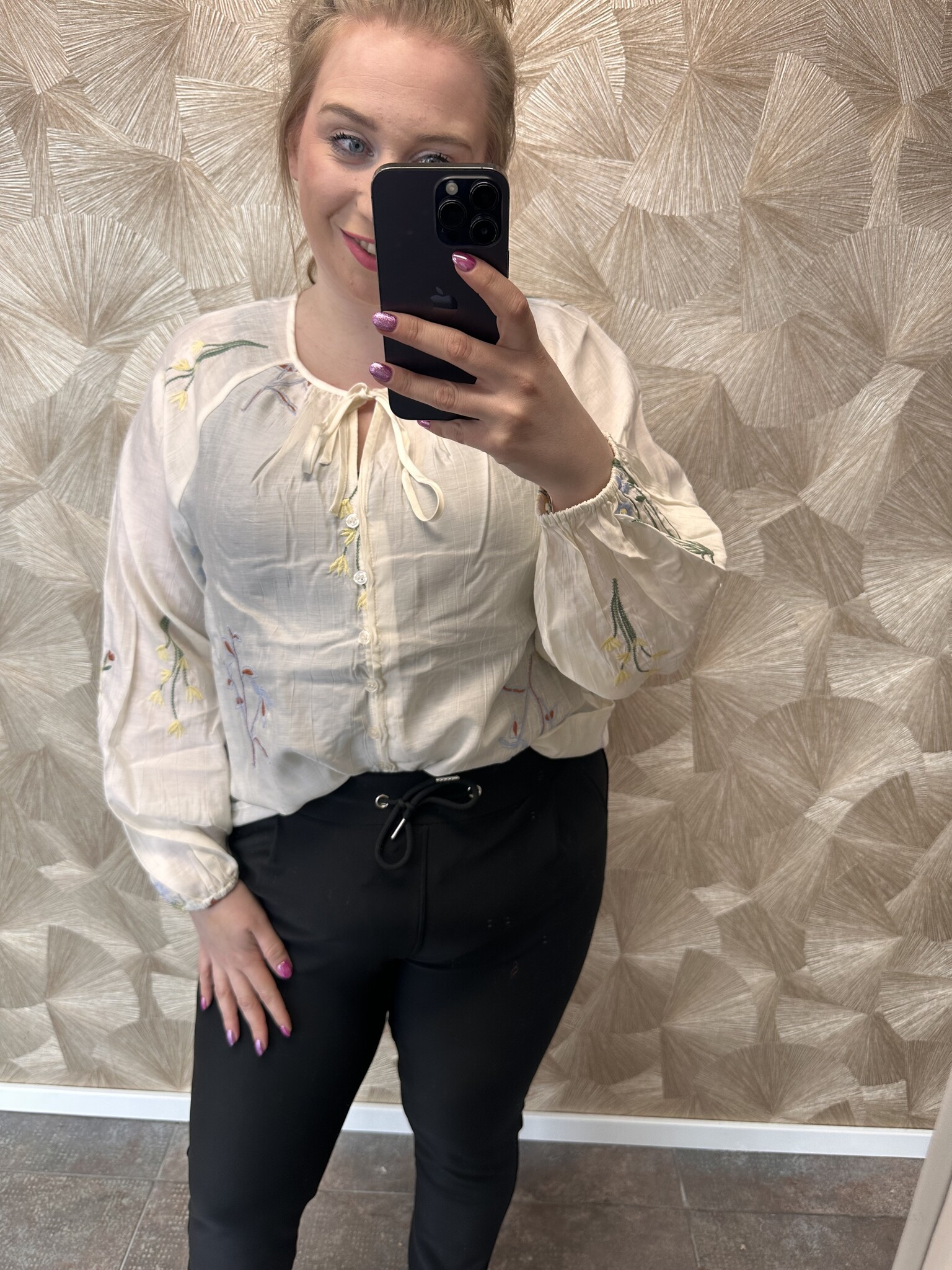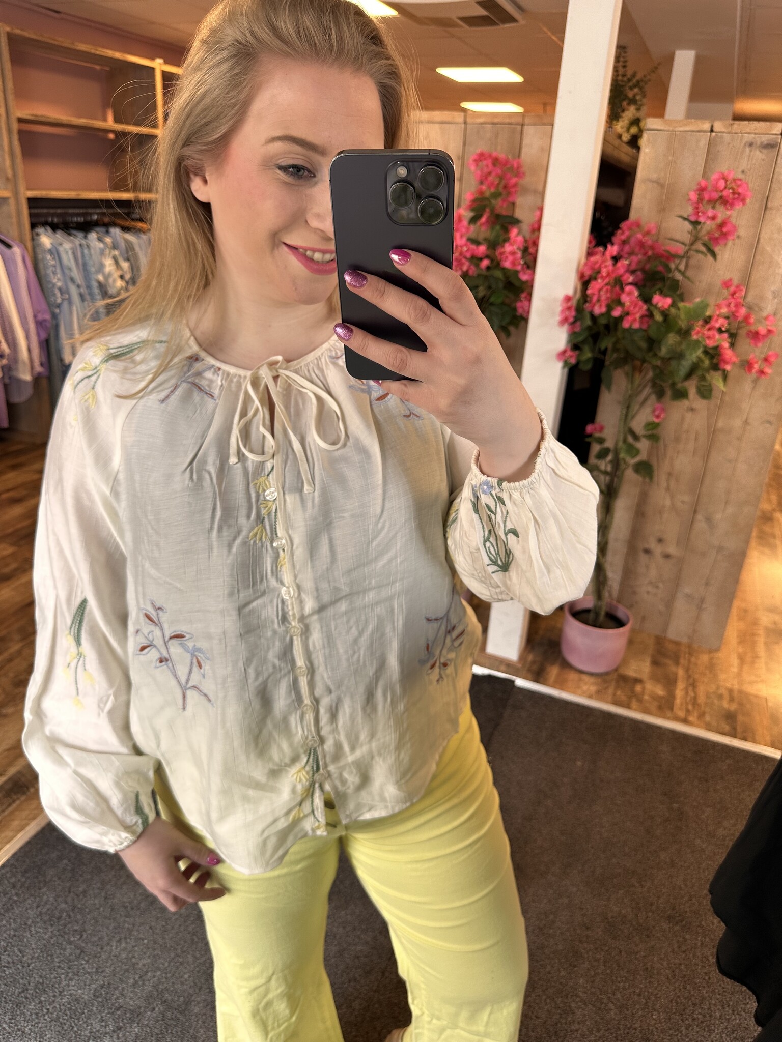 VMCLINA LS EMB TOP WVN CUR Snow White/Colorful
