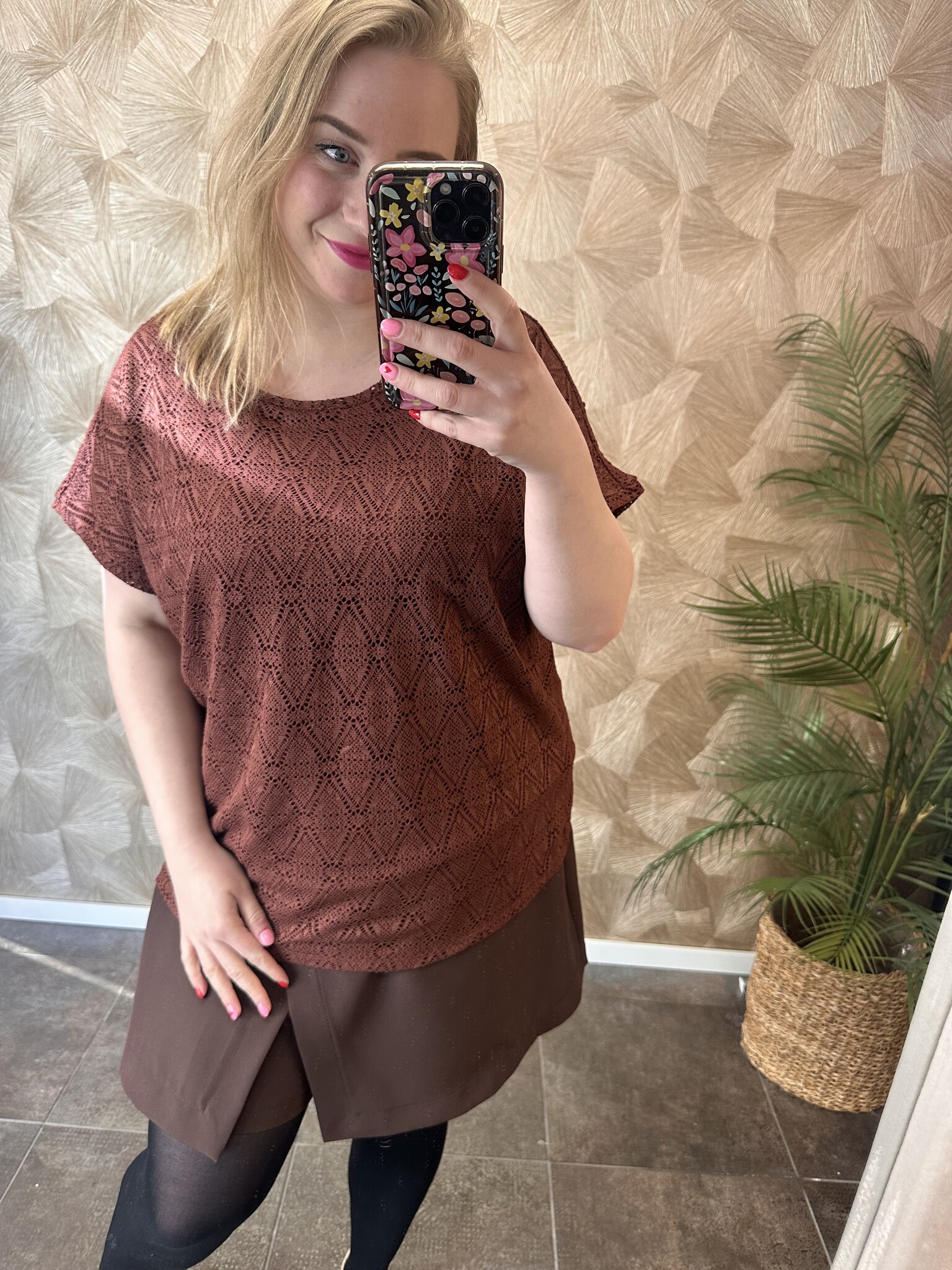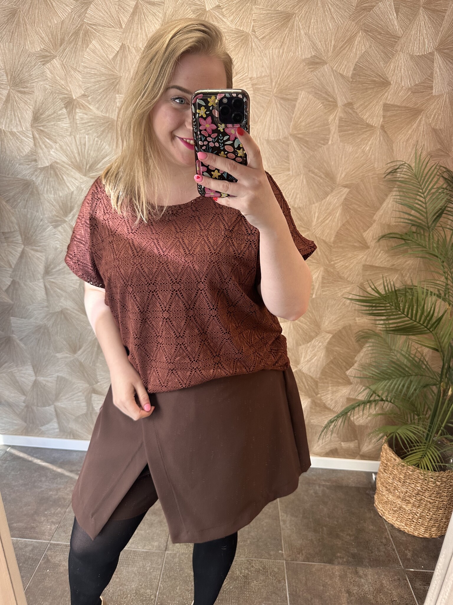 Dit bruine shirt van Vero Moda Curve draagt heerlijk en heeft een normale pasvorm. Het shirt heeft een mooie bruine kleur met kant. Gemaakt van een luchtige stof dat zorgt voor een fijn draagcomfort. Het shirt is afgewerkt met wijde ronde hals en met een ondershirt aan de binnenkant. Een casual chic shirt dat leuk te combineren is met een jeans!
