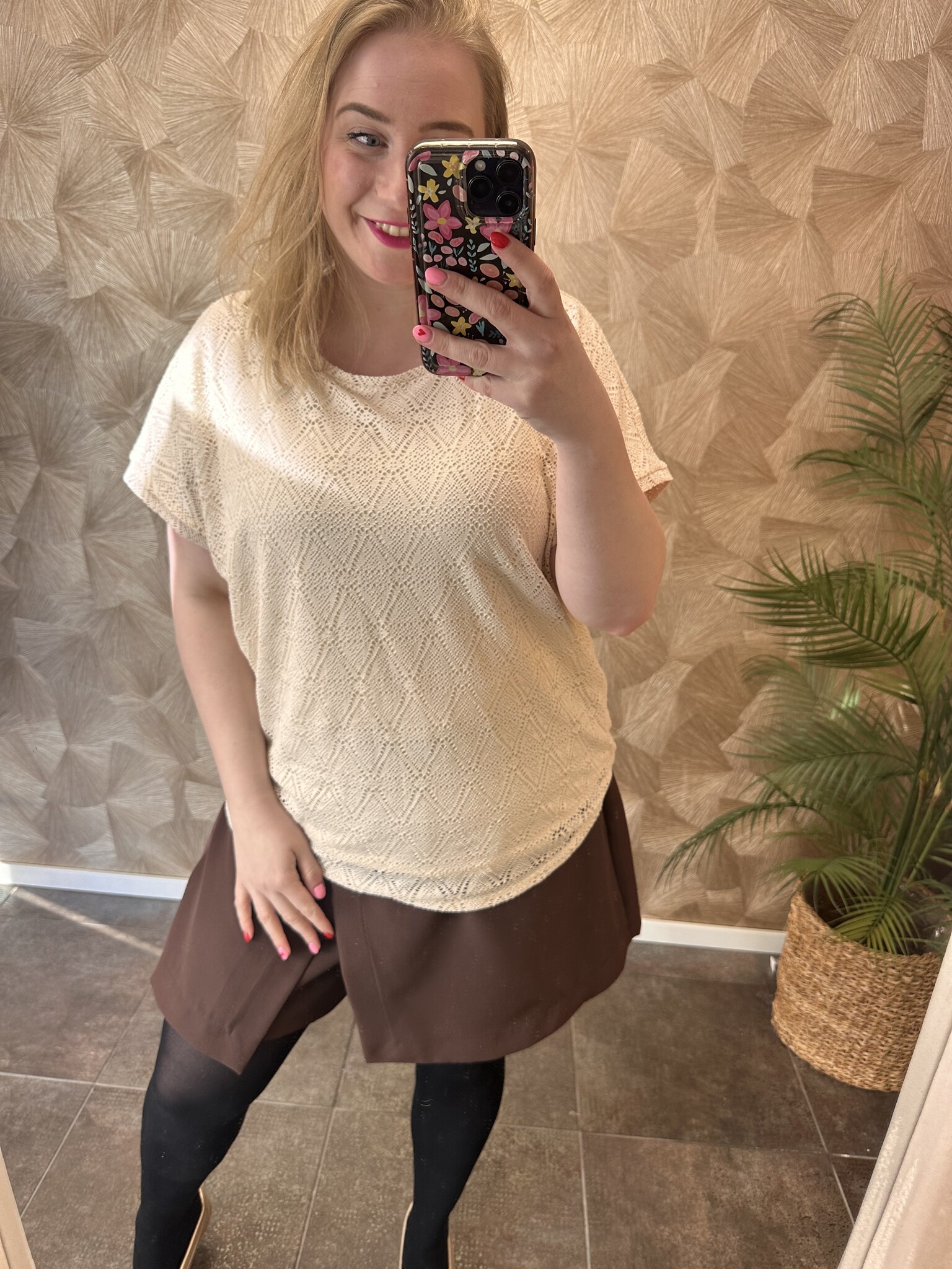 Dit crème shirt van Vero Moda Curve draagt heerlijk en heeft een normale pasvorm. Het shirt heeft een mooie crème kleur met kant. Gemaakt van een luchtige stof dat zorgt voor een fijn draagcomfort. Het shirt is afgewerkt met wijde ronde hals en met een ondershirt aan de binnenkant. Een casual chic shirt dat leuk te combineren is met een jeans!