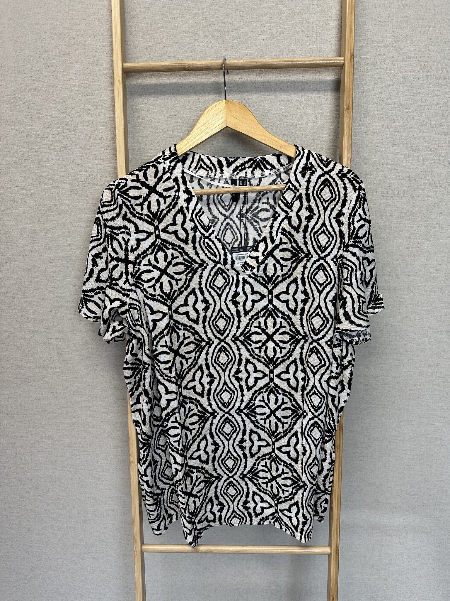 Dit shirt van Vero Moda Curve draagt heerlijk en valt mooi. De shirt heeft een mooie bruin met witte kleur met sierlijke zwarte vormen en is uitgevoerd in een los model. Gemaakt van soepele stof voor een fijn draagcomfort. Dit shirt heeft een v-hals. Leuk te combineren met je favoriete jeans.