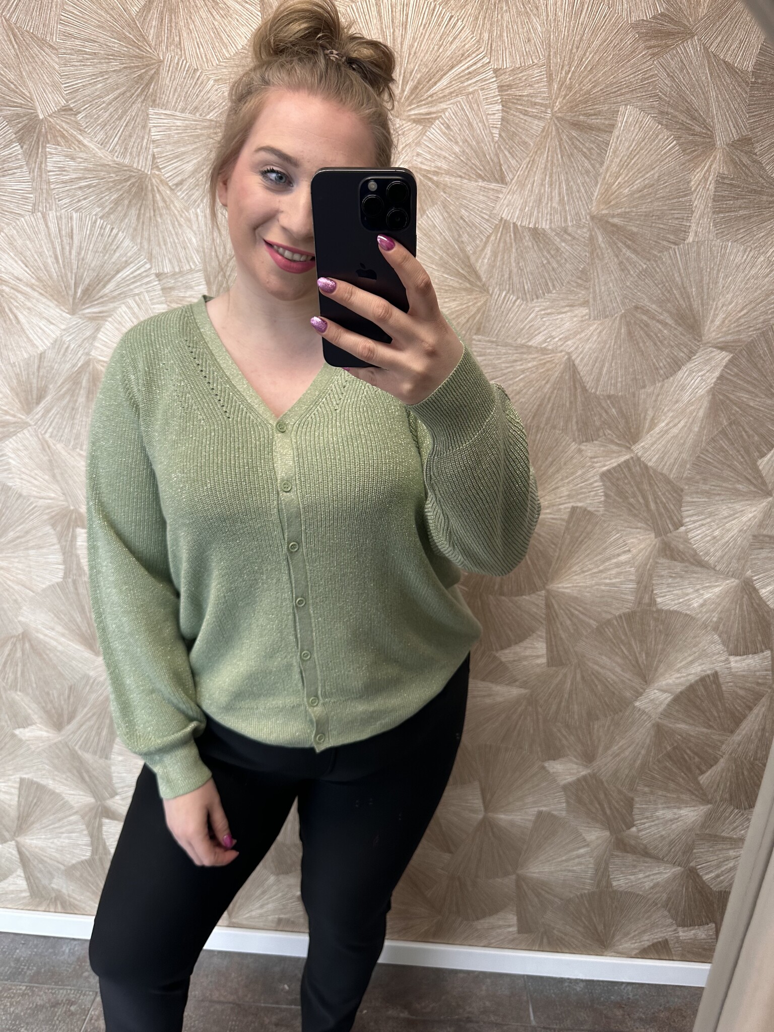 VMCNEWLEX SHINE LS SHORT V-NECK CAR CUR Mistletoe/W. SILVER