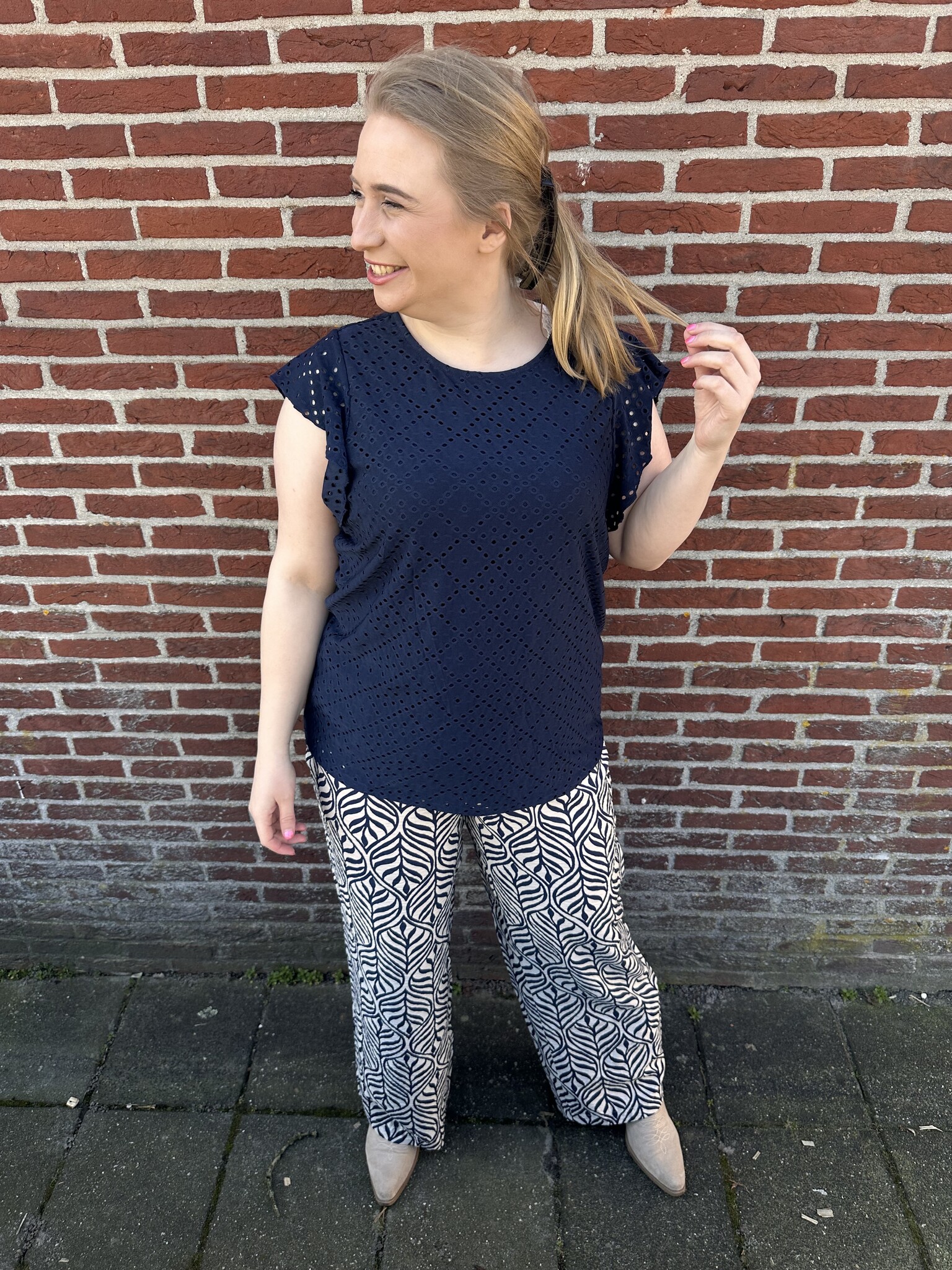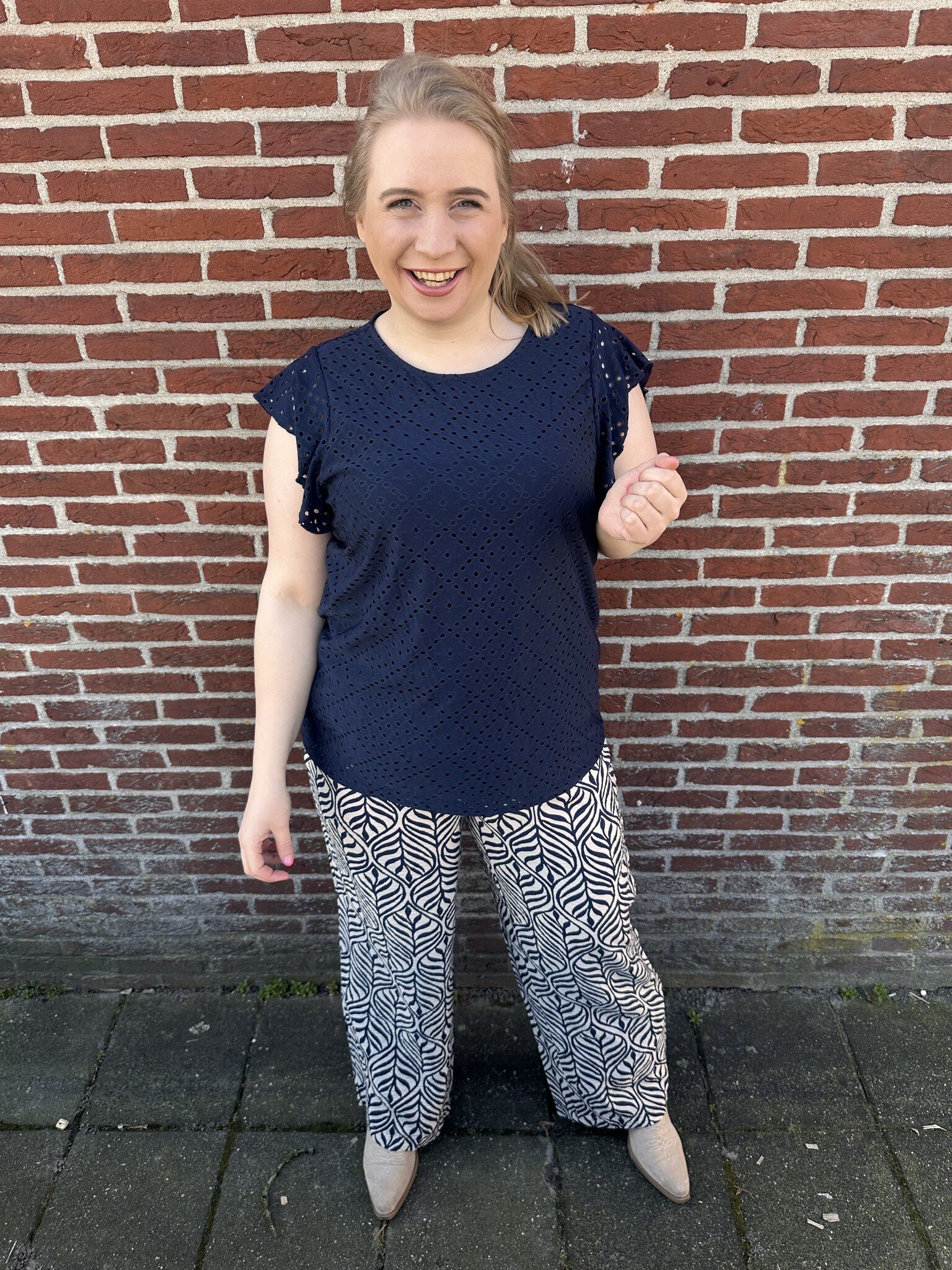 Dit shirt van Vero Moda Curve is een fijn item voor elke dag. De shirt heeft een mooie donkerblauw kleur en heeft een comfortabele pasvorm. De luchtige stof zorgt voor een prettig draagcomfort. Voorzien van sierlijk patroon met gaatjes met voering aan de voorkant. Leuk te combineren met andere items uit je kast.