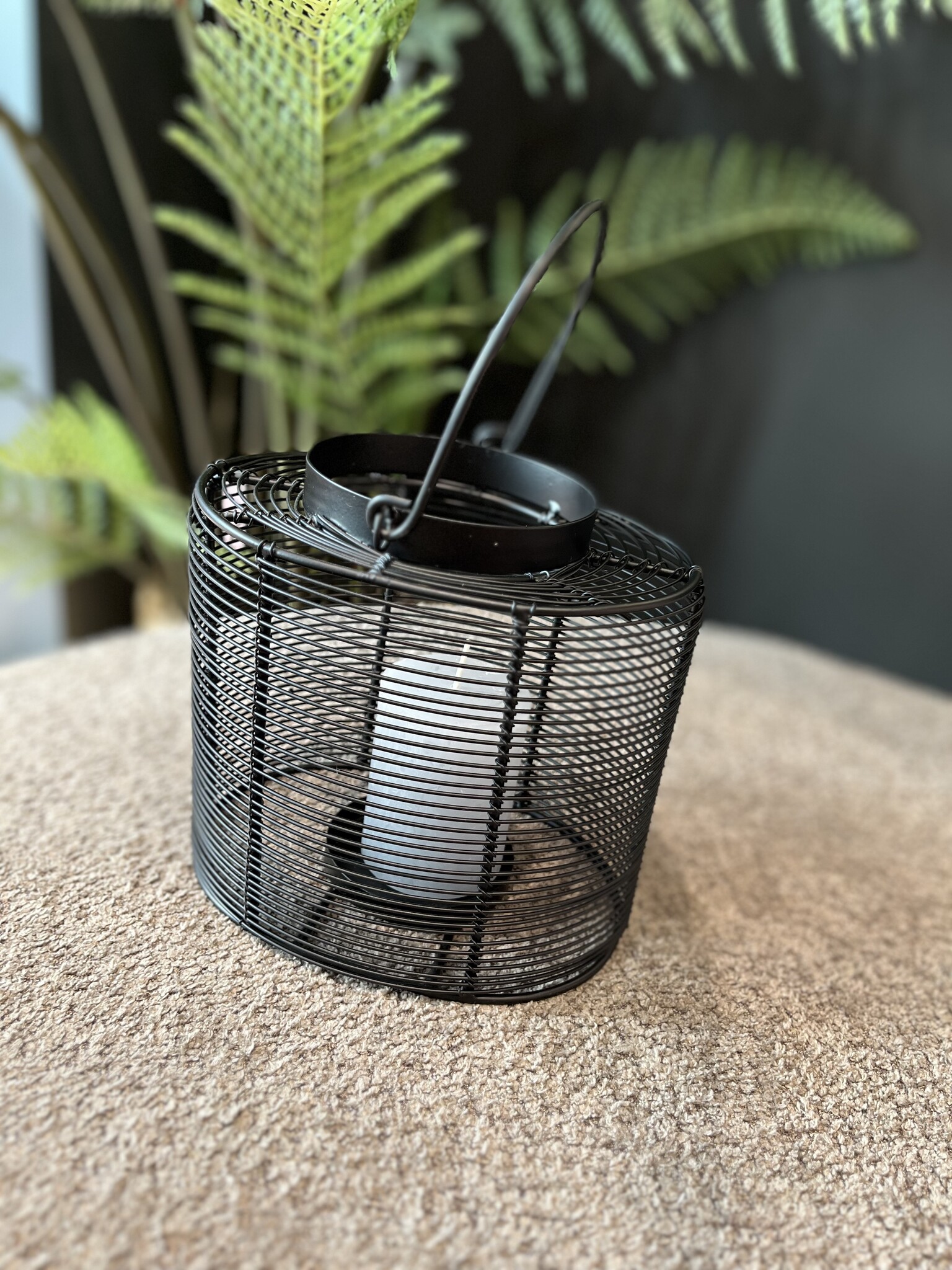 Prachtige ovale windlichten van zwart metaal incl. een mooie grijze stompkaars. Super leuk ter decoratie van je woonkamer, keuken, slaapkamer of onder de overkapping.